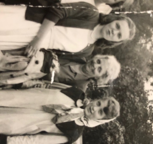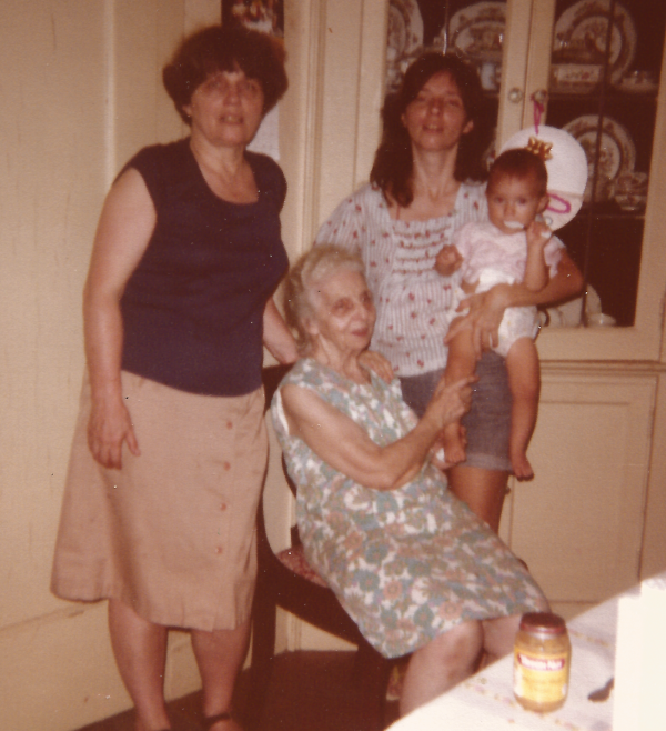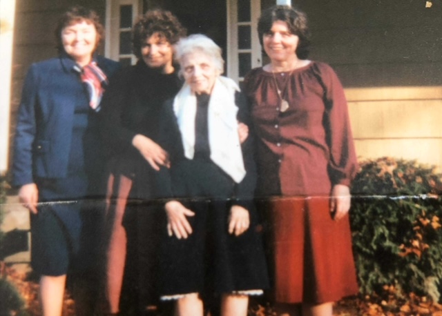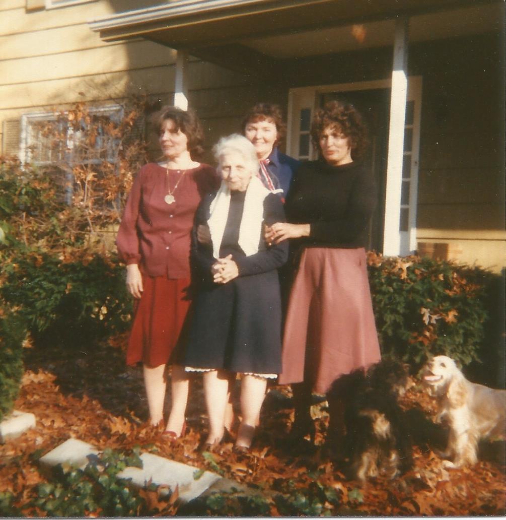 Three sisters Katherine Harold Barbara Joe Birthday early 1950s from Karen.jpg