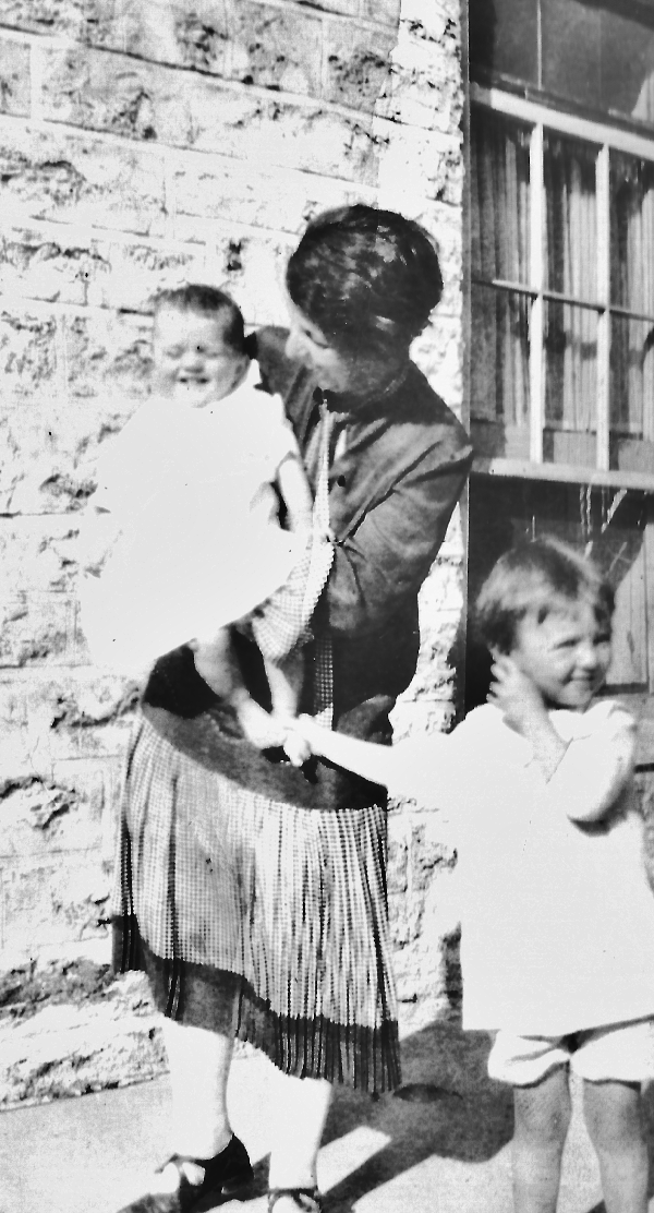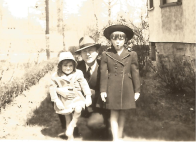 Three sisters, Katherine, Harold, and Barbara Jo Birthday early 1950s (Karen Ley)