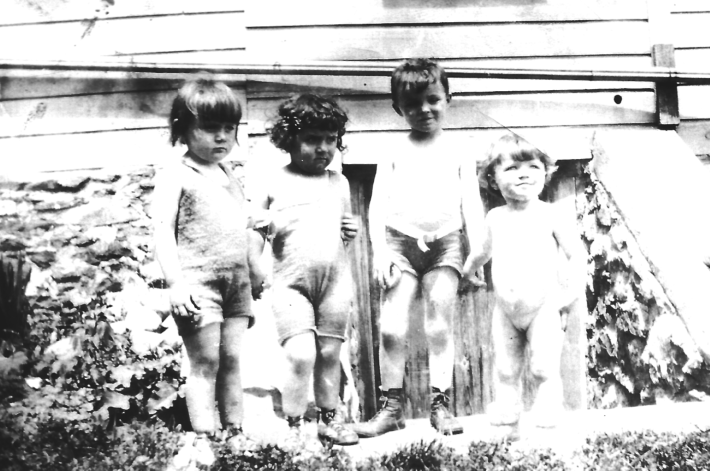 Three sisters, Katherine, Harold, and Barbara Jo Birthday early 1950s (Karen Ley)