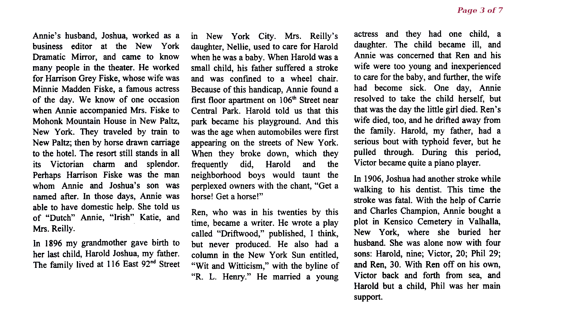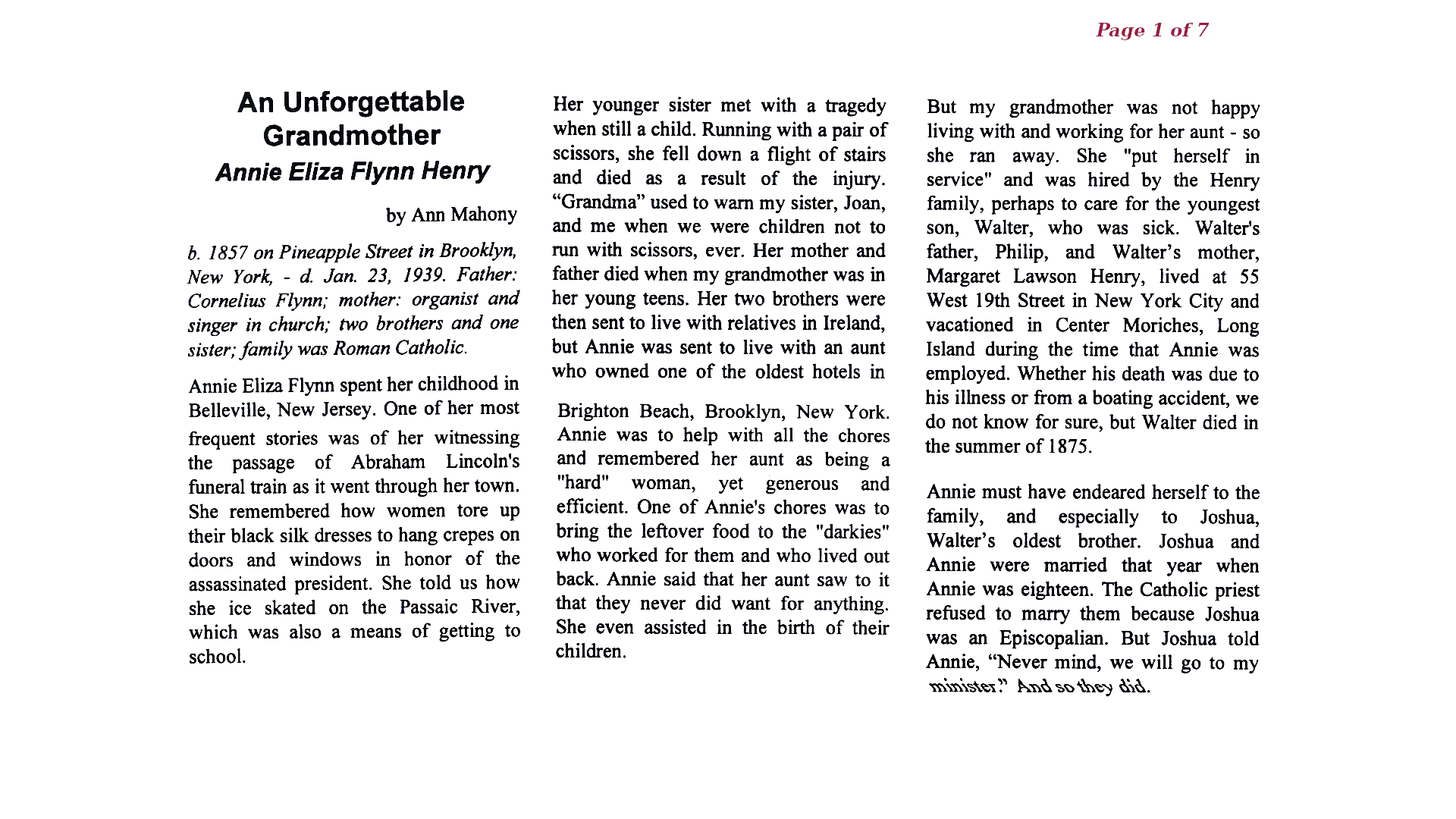 This article was written by Ann H Mahony and appeared in the Mahony Family Newsletter, January 1998. The newsletter was published by Sean H, Mahony.